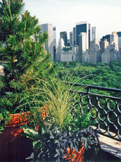 - A penthouse terrace in Greenwich Village, NYC, including layout and plantings.