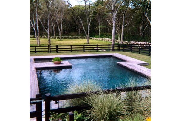 This Martha's Vineyard mid-century Japanese-style home, designed by a colleague of l.M. Pei as a summer retreat on 22 wooded acres, was renovated as a guest house for a larger main home planned for the property. The landscape master plan included new drives, horse paddocks, pool, outbuildings, and gardens. The shape of the pool reflects the geometry of the house. A lushly planted 'dune' of drought-tolerant grasses and native perennials conceals the pool fence, and provides a sensual transition between house and pool. Recycled curbstones from Boston are used as steps, and planted with creeping thyme for fragrant and soft barefoot jaunts to the pool. A mature stand of Japanese Cedars was successfully transplanted to make way for renovations, and located to frame new views from the house.