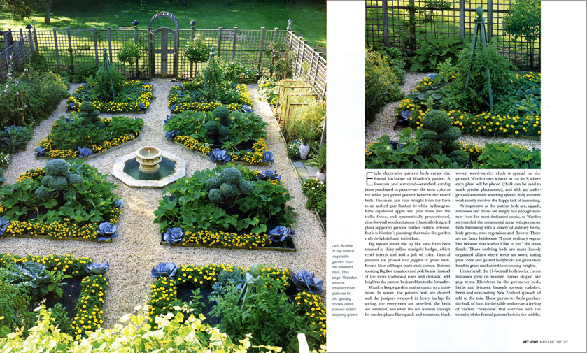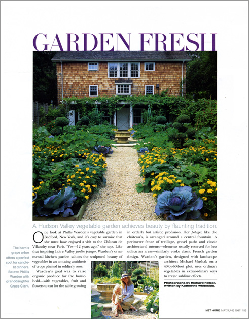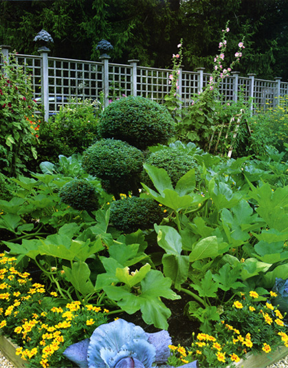 Working with the client's desire for a French-inspired kitchen garden to provide organic vegetables and cutting flowers, Michael Mushak helped her to create a formal yet whimsical garden based on the jardin potager at the Chateau de Villandry near Paris.