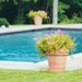 The large brick home called for a formal and restrained landscape treatment using traditional boxwood and specimen trees, and bluestone terraces with brick seat-walls. The pool provided an opportunity to add a modern twist to this layout, with a simple but dramatic sweep of tall ornamental grass as a backdrop that sways with the slightest breeze. Simple beds of roses and ever-blooming annuals, and a collection of well-planted large pots, provide season-long interest that punctuate the mostly green landscape. |